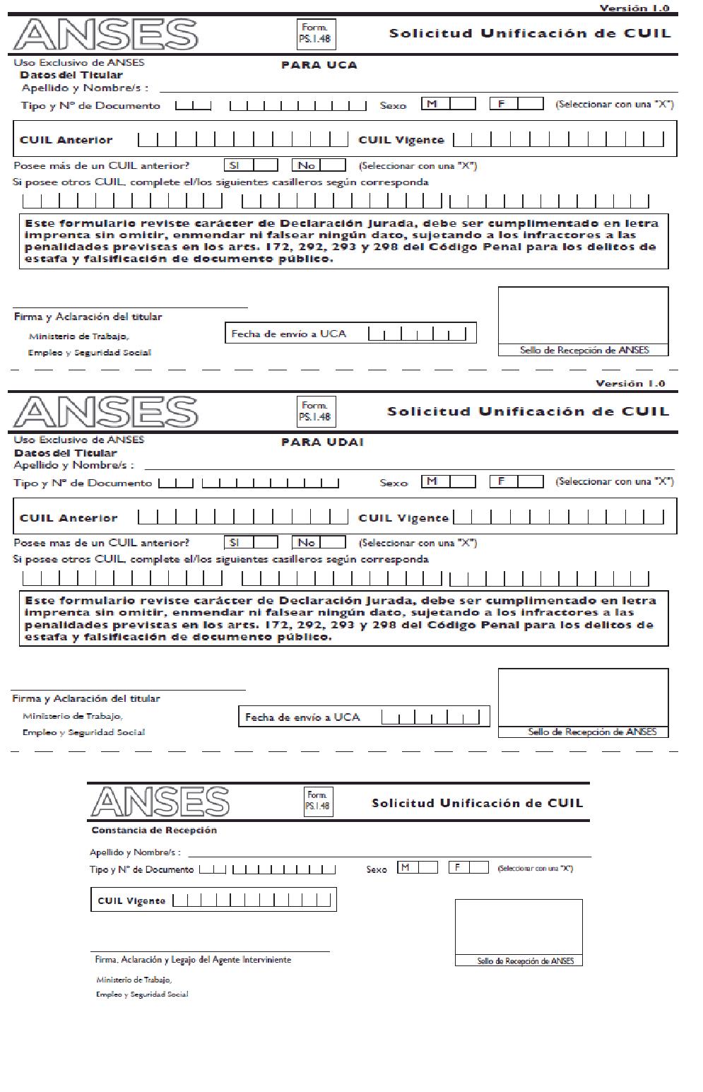 • Formulario PS 1.48 completo (o DDJJ con los mismos datos del formulario legible con firma y aclaración) Anexo III.